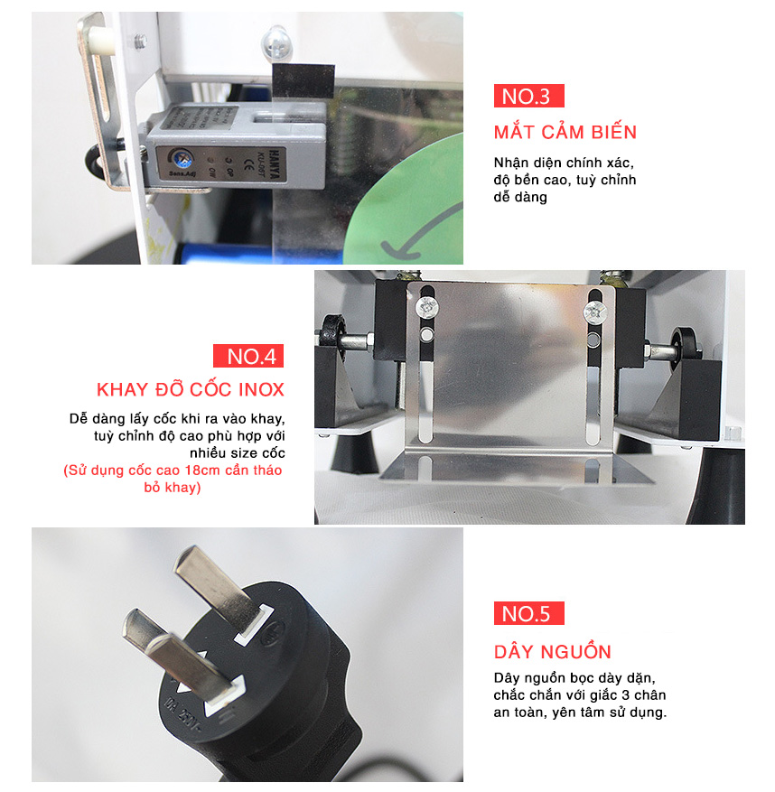 Máy dập cốc bán tự động, máy ép ly ET-B9 có thể dán ly nhanh chóng các loại ly 350ml, 500ml và 700ml.