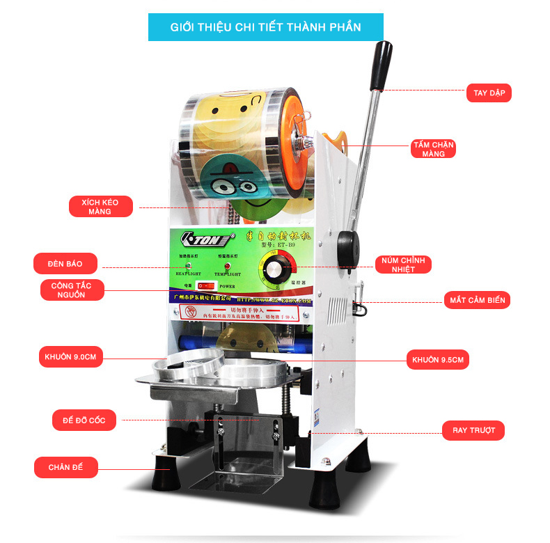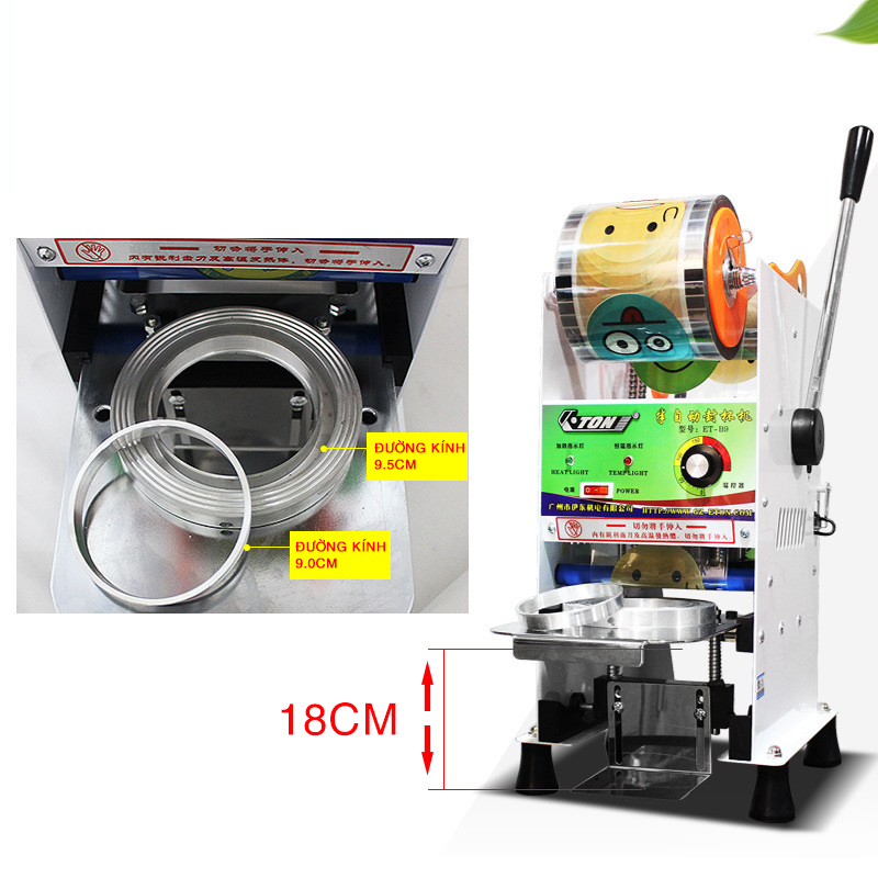Máy dập nắp cốc bằng tay, máy ép ly Eton ET-B9 được sản xuất theo công nghệ cao, rút ngắn thời gian đóng nắp ly, cốc. Là cánh tay đắc lực giúp đỡ việc kinh doanh trà sữa, nước giải khát thuận lợi và thành công hơn.