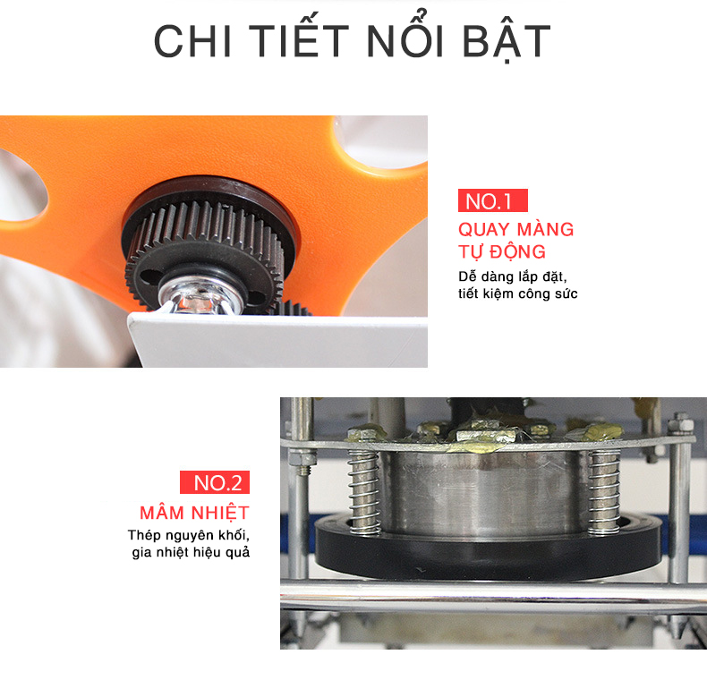 Máy có công suất 350W có tốc độ làm nóng khuôn ép chỉ trong khoảng 10p, nhiệt độ khuôn ép luôn được giữ ổn định khoảng 170 độ C.