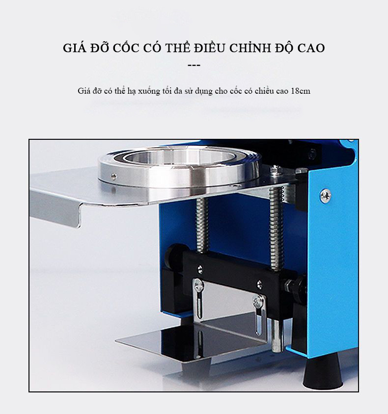 + Máy dán miệng cốc , máy dập nắp ly với công suất cao dễ vận hành, không gây ồn ảnh hưởng tới không khí của quán.